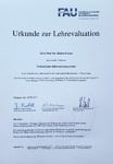 Prof. Richard Lenz hat für seine Vorlesung „Evolutionäre Informationssysteme“ in der studentischen Lehrevaluation der Technischen Fakultät im Wintersemester 2016/17 einen 1. Platz erlangt.